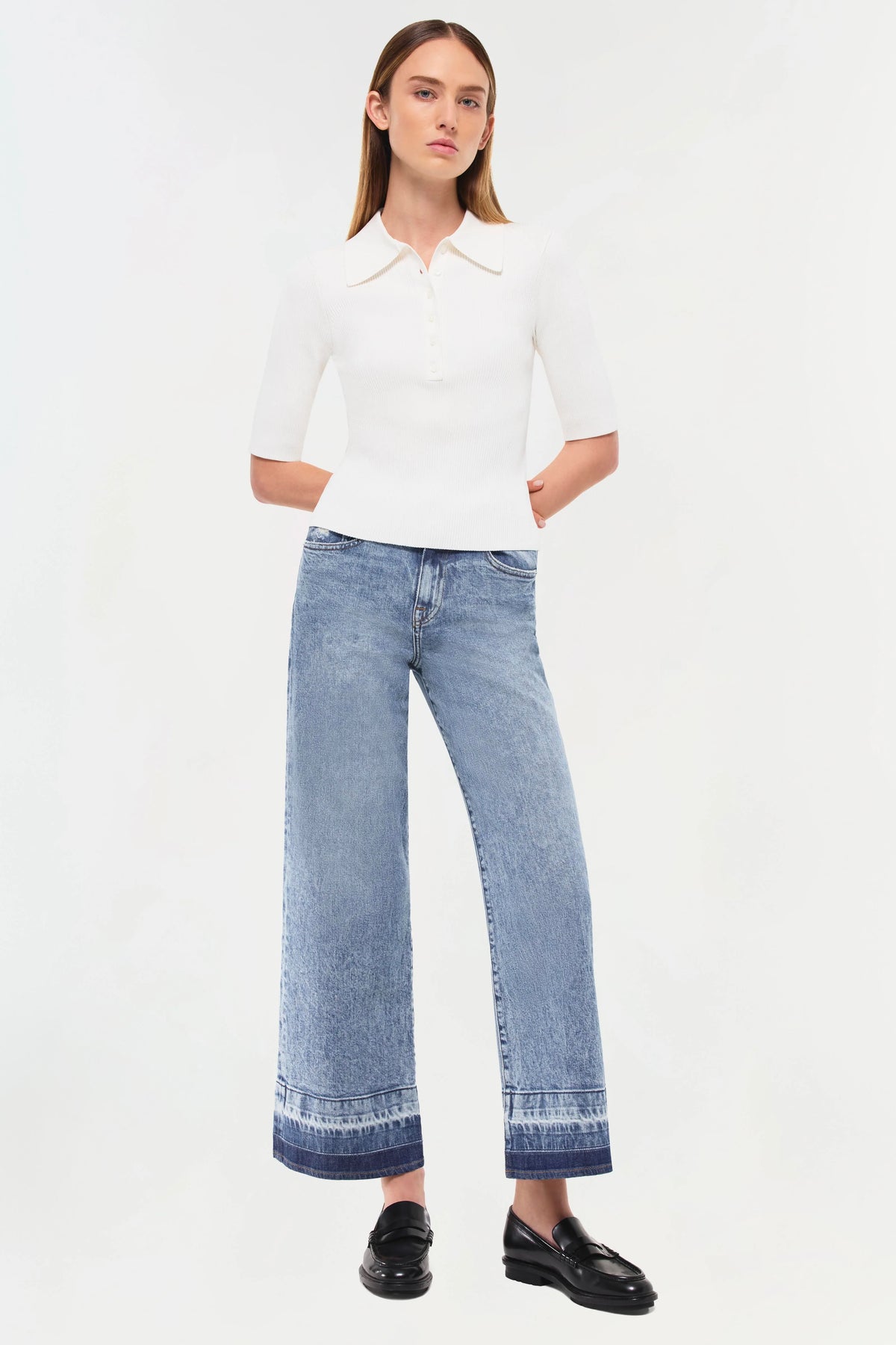 The Jude Wide Leg Denim in Sherwood. High waist, relaxed fit denim with wide leg silhouette and released hem.