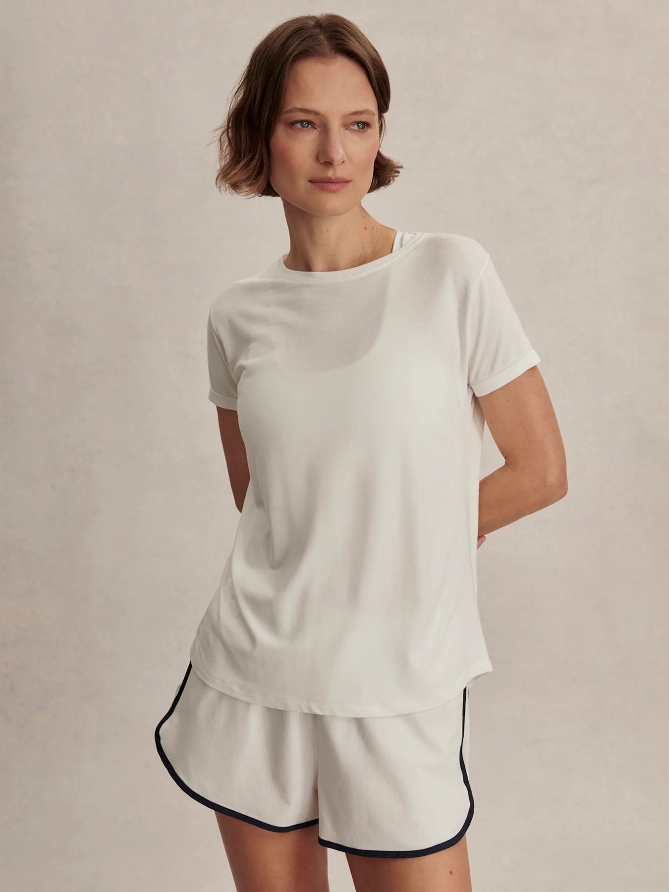 Cut to an easy, longline shape, the Saskia is a staple tee for active days. Crafted from our Modal Seamless fabric, it offers super soft and lightweight comfort with a natural feel, draping, and a hint of texture. Complete with a shaped, curved hem that accentuates the fit.