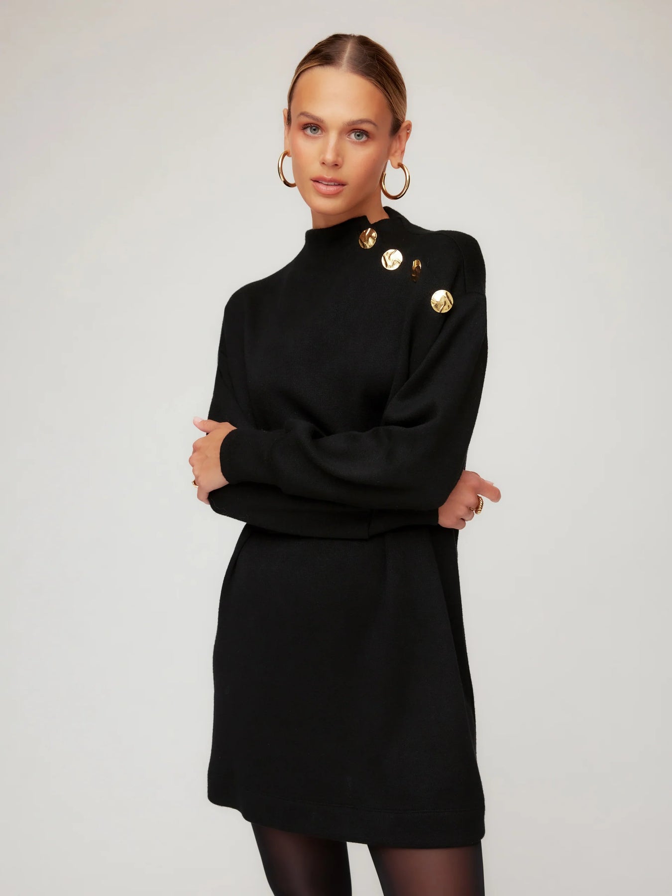 The Brenna Mock Neck Dress is crafted from ultra-soft double brushed knit, combining comfort with effortless sophistication. Designed in a relaxed shift silhouette, it features a sleek mock neckline, chic button closure detail along the shoulder, drop shoulders, and long sleeves. Falling just above the knee, this pull-on dress is the perfect blend of modern elegance and everyday ease.